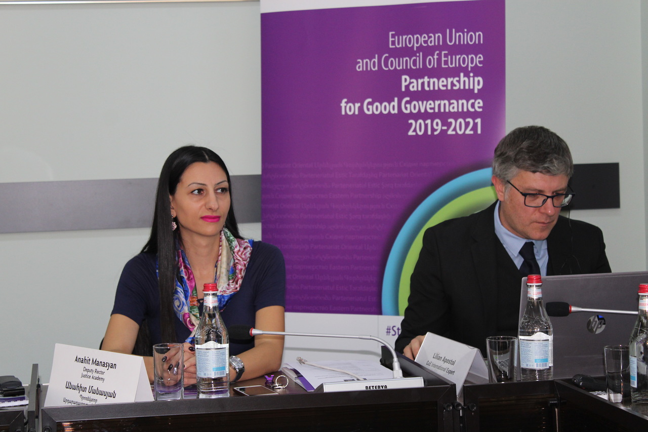 Արդարադատության ակադեմիայի անունից ԵԽ գործընկերներին, միջազգային փորձագետներին, սեմինարի մասնակիցներին ողջունեց պրոռեկտոր Անահիտ Մանասյանը՝ նշելով, որ արդեն ավանդական է դարձել ԵԽ-ի հետ համատեղ միջոցառումների կազմակերպումը: «Այդ համագործակցությունը կարևորվում է դատաիրավական բարեփոխումներին նպաստելու, արդարադատության, իրավակիրառ պրակտիկայի որակի կատարելագործմանն որոշակի ներդրում ունենալու տեսանկյուններից»,-նշեց պրոռեկտորը: Ավելին, նրա խոսքով՝ այս պահին դատավորների և դատական ծառայողների համար մշակվում է 5 նոր դասընթաց՝ ներպետական և միջազգային փորձագետների ներգրավմամբ: Դրանք վերաբերում են դատական ակտերի կազմման հմտություններին, հարցաքննության մեթոդիկային և հաղորդակցության հմտություններին և այլն: