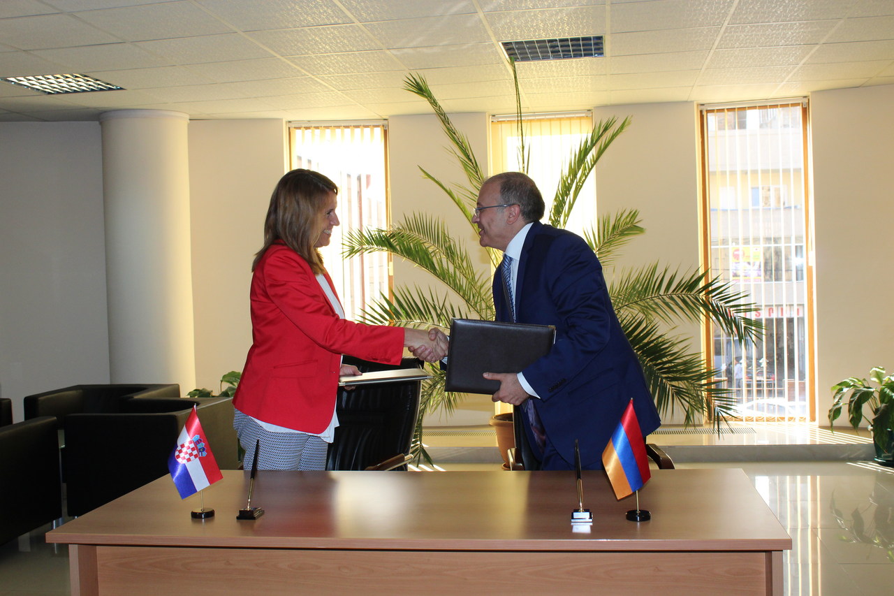 Հանդիսավոր միջոցառման ընթացքում ռեկտոր Սերգեյ Առաքելյանը ողջունեց հյուրերին և նշանավորեց Խորվաթիայից ժամանած գործընկերների՝ համագործակցության ձևավորմանն ու զարգացմանն ուղղված այցը: Անդրեա Պոսավեց Ֆրանիչն իր հերթին երախտագիտություն հայտնեց ջերմ ընդունելության համար և վստահեցրեց, որ այցը երկու երկրների և կառույցների բարեկամության ու համագործակցության, ինչպես նաև համատեղ ծրագրերի հրաշալի սկիզբ է: