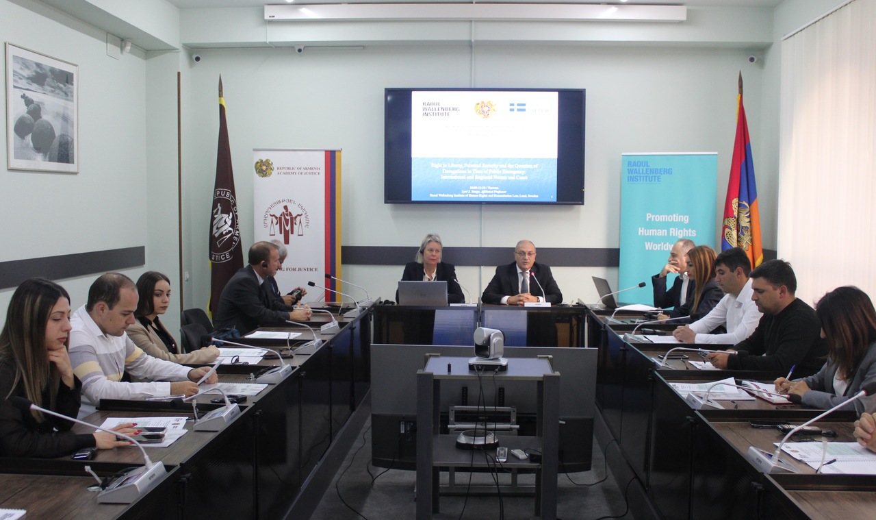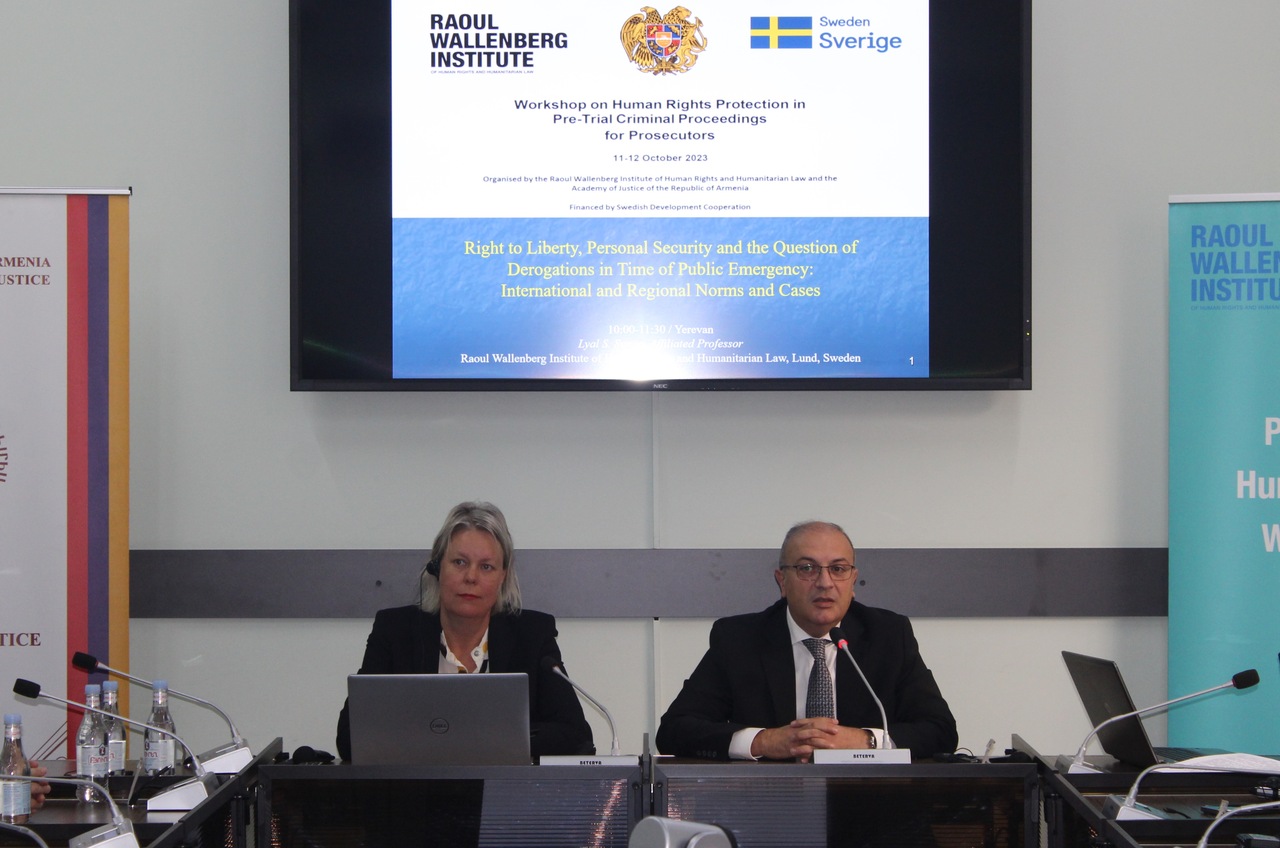 Հոկտեմբերի 11-12-ը Արդարադատության ակադեմիայում անցկացվեց աշխատաժողով՝ «Մարդու իրավունքների պաշտպանությունը մինչդատական քրեական վարույթի ընթացքում» թեմայով: Աշխատաժողովը կազմակերպել էր Ակադեմիան՝ Ռաուլ Վալլենբերգի անվան մարդու իրավունքների և մարդասիրական իրավունքի ինստիտուտի հետ համատեղ: Մասնակցում էին դատախազի և քննիչի թեկնածուները: Աշխատաժողովը վարում էին միջազգային և ազգային փորձագետներ Լյալ Ս. Սունգան և Արսեն Նիկողոսյանը: