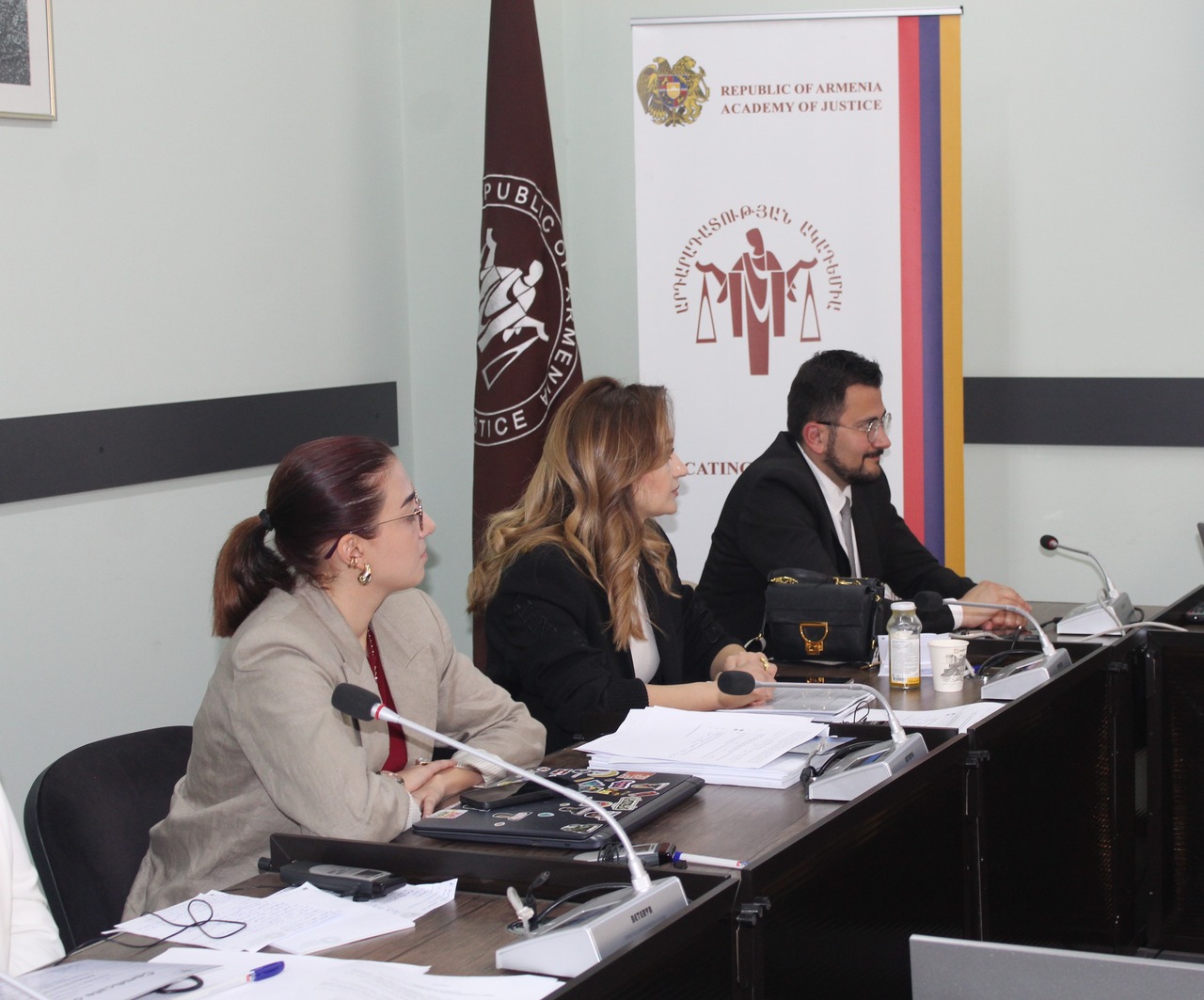 Մարտի 13-15-ը Արդարադատության ակադեմիայում մեկնարկեցին Նյուրնբերգյան սկզբունքների միջազգային ակադեմիայի ներկայացուցիչների կողմից կազմակերպված «Միջազգային իրավունքի զարգացումը Հայաստանի Հանրապետությունում» խորագրով եռօրյա դասընթացները՝ նախատեսված դատախազների, քննիչների և այլ իրավաբան մասնագետների համար: