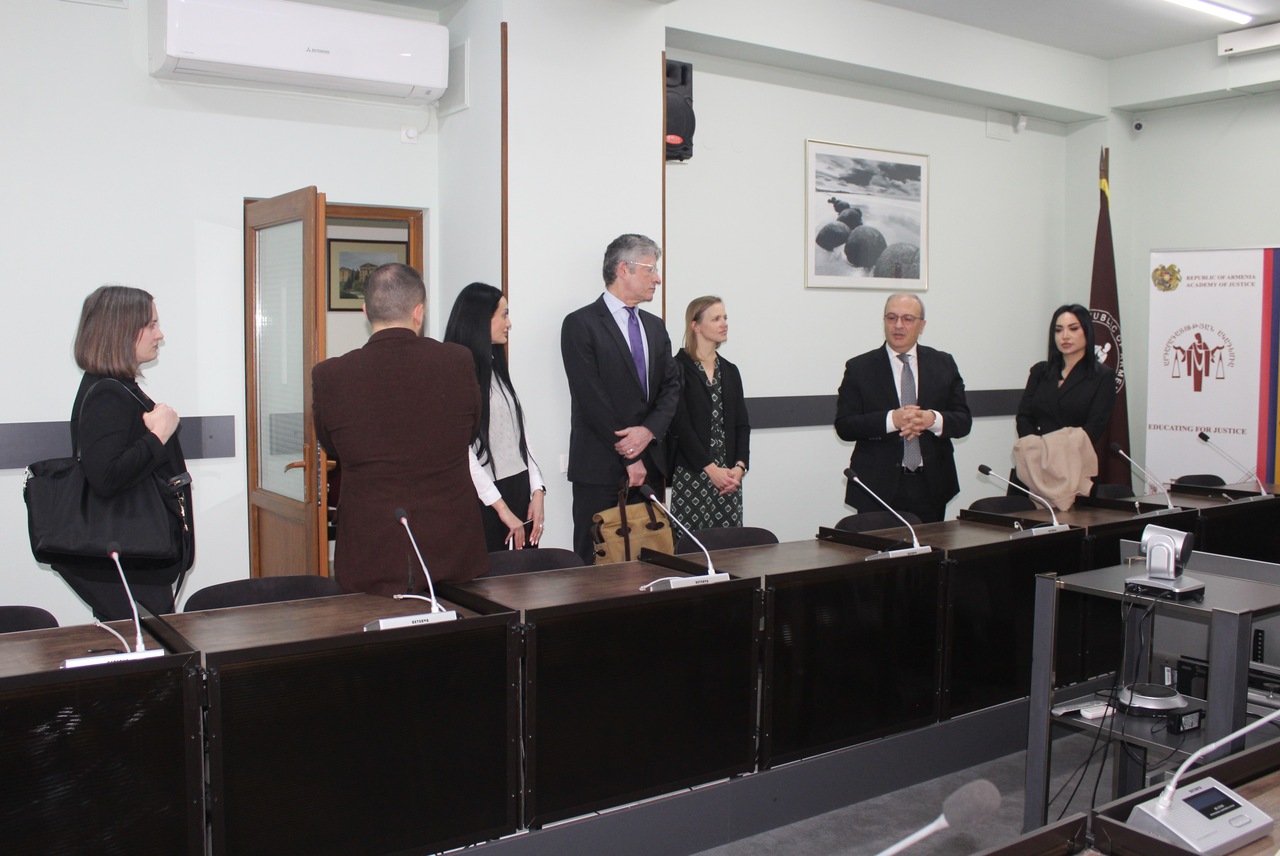 Մարտի 18-ին Արդարադատության ակադեմիա այցելեցին ՀՀ-ում ԱՄՆ պետքարտուղարության ԹՊԻՀ Եվրասիական թիմի ղեկավար Մարի Քուրթը, ԱՄՆ դեսպանատան ԹՊԻՀ հայաստանյան գրասենյակի տնօրեն Ալեքսիս Հաֆթվանին, ԹՊԻՀ «Քրեական արդարադատության բարեփոխումների» ծրագրի ղեկավար Քրիստինա Աֆոյանը, Արևելք-Արևմուտք Կառավարման Ինստիտուտի փոխնախագահ Նիկոլաս Մենսֆիլդը, Արևելք-Արևմուտք Կառավարման Ինստիտուտի երկրի կոորդինատոր Սերգո Կավտարաձեն: