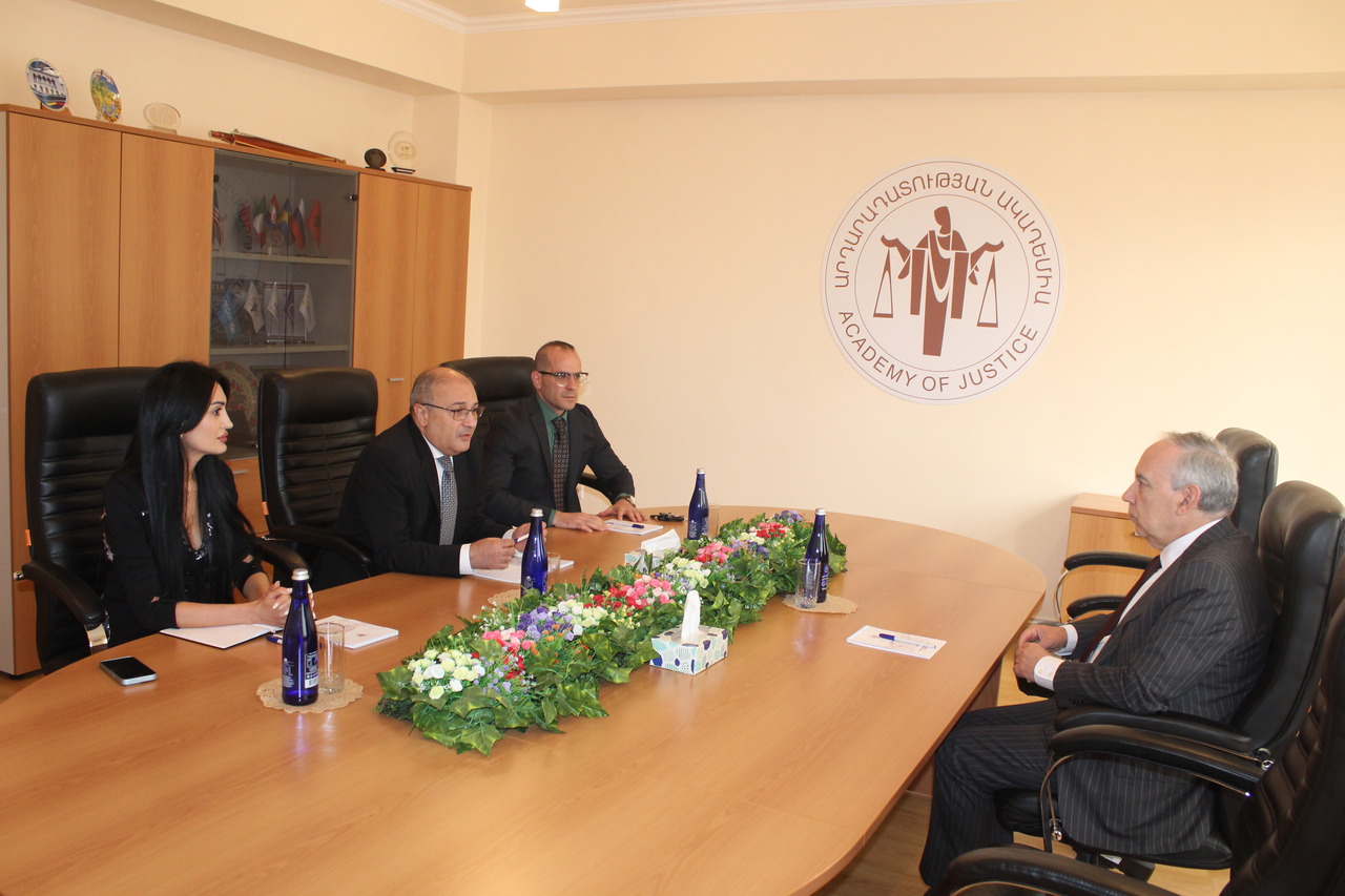 Ռեկտորը ջերմորեն ողջունեց հյուրին,ներկայացրեց Ակադեմիայի գործունեության հիմնական ուղղությունները,պատասխանեց հետաքրքրող հարցերին, քննարկվեցին արդյունավետ համագործակցության հեռանկարները: