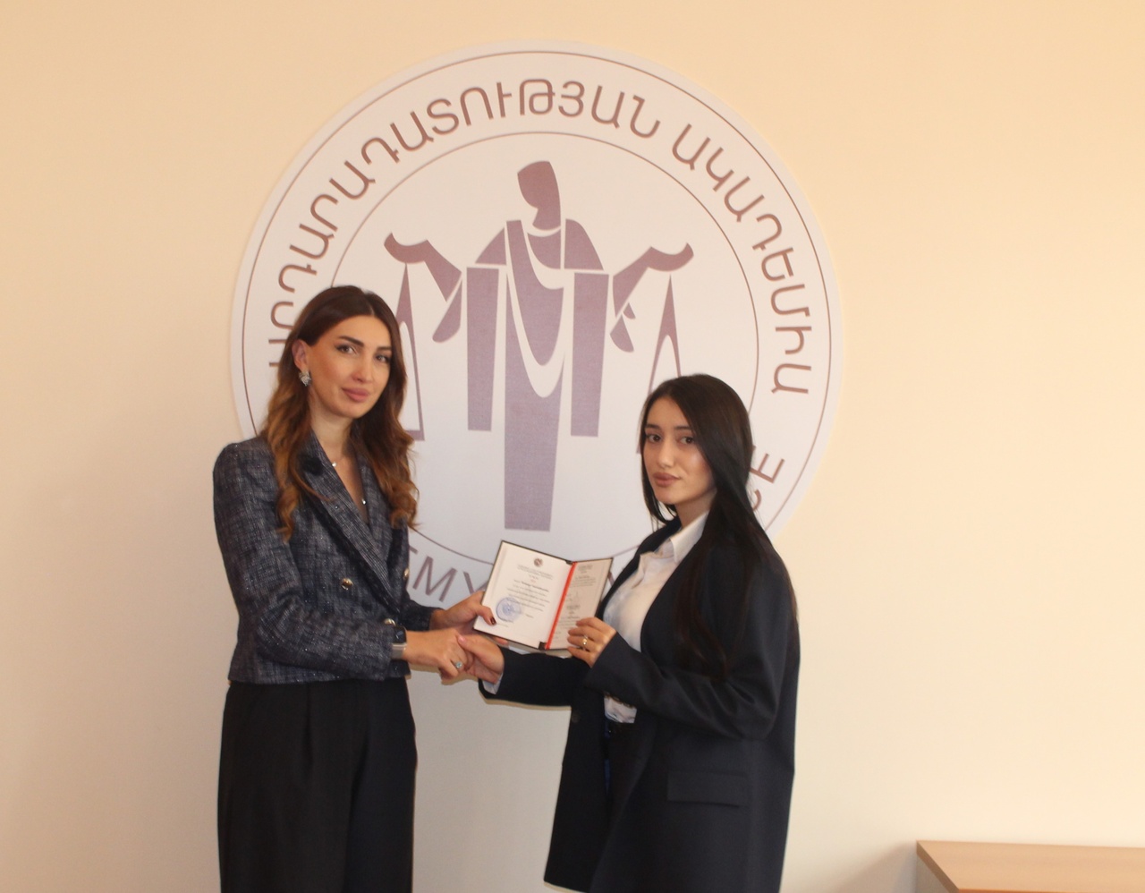 Նոյեմբերի 4-ին Արդարադատության ակադեմիայում պրոռեկտոր Մարգարիտ Ամյանը դիպլոմներ հանձնեց Հակակոռուպցիոն կոմիտեում ինքնավար պաշտոնների թեկնածուների 2024 թվականի ցուցակում ընդգրկված անձանց: