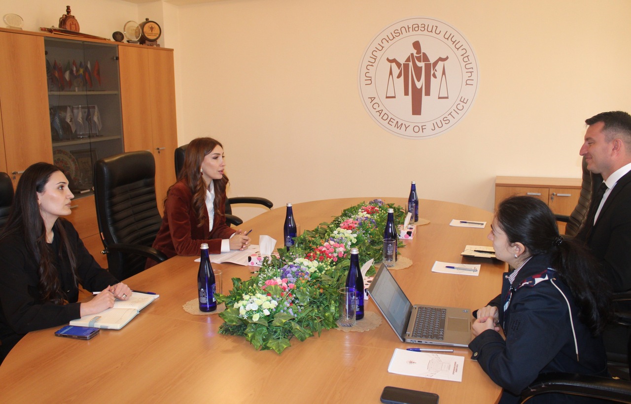 Ապրիլի 27-ին Արդարադատության ակադեմիայի պրոռեկտոր Մարգարիտ Ամյանն ընդունեց ԻՆՏԵՐՊՈԼ-ի պատվիրակությանը: Պատվիրակության կազմում էին ԻՆՏԵՐՊՈԼԻ-ի գլխավոր քարտուղարության Երեխաների դեմ ուղղված հանցագործությունների պաշտպանության մասնագիտացված սպա Ալեքսանդրու Դան Գերտան և ԻՆՏԵՐՊՈԼԻ-ի գլոբալ նորարարությունների համալիրի Երեխաների դեմ ուղղված հանցագործությունների գլխավոր ծրագրի պատասխանատու Աննա Սարգսյանը: