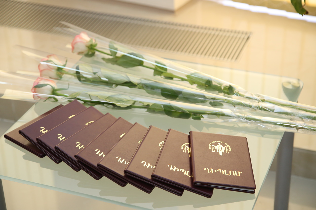 Արդարադատության ակադեմիայի ռեկտոր Սերգեյ Առաքելյանը շնորհավորեց և դիպլոմներ հանձնեց ակադեմիայի երրորդ սերնդի շրջանավարտներին՝ դատավորների 9 թեկնածուներին (7-ը՝ քաղաքացիաիրավական, 2-ը՝ վարչաիրավական մասնագիտացումներով):