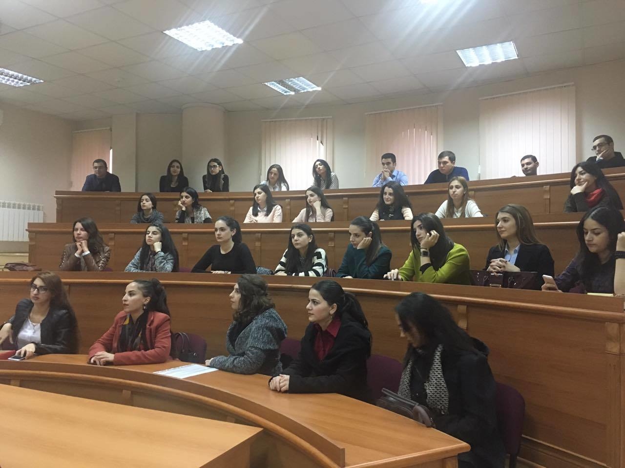 Նոյեմբերի 16-ին Արդարադատության ակադեմիան հյուրընկալեց ԵՊՀ իրավագիտության ֆակուլտետի ուսանողներին: Նախաձեռնությունը Իրավագիտության ֆակուլտետի ուսանողական գիտական ընկերությանն էր: Ուսանողները ցանկություն էին հայտնել այցելել Արդարադատության ակադեմիա, հանդիպել ակադեմիայի ռեկտոր, իրավաբանական գիտությունների դոկտոր, պրոֆեսոր Սերգեյ Առաքելյանին: