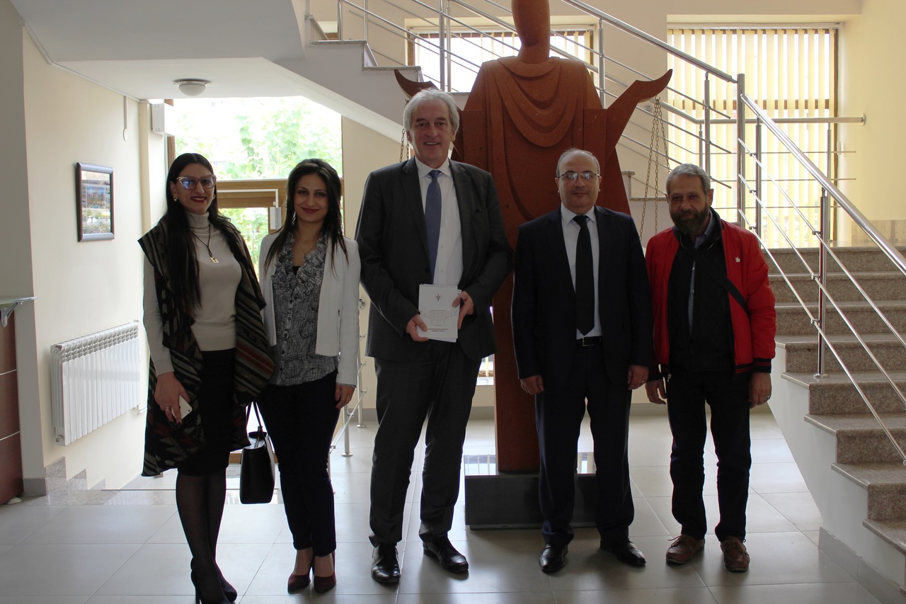 Արդարադատության ակադեմիայի ռեկտոր Սերգեյ Առաքելյանն այսօր ընդունել է Գերմանական միջազգային համագործակցության ընկերության (GIZ) «Հարավային Կովկասում եվրոպական չափորոշիչներին իրավական համապատասխանեցում» ծրագրի տարածաշրջանային ղեկավար Թոմաս Մայերին: Հանդիպմանը մասնակցել են նաև Ակադեմիայի գիտական աշխատանքի գծով պրոռեկտոր Անահիտ Մանասյանը և վերոնշյալ ծրագրի փորձագետ Անի Չիլինգարյանը: