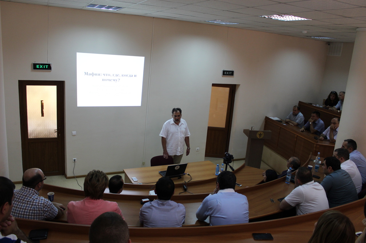 Հուլիսի 12-ին Արդարադատության ակադեմիայում դասախոսությամբ հանդես եկավ Գեորգի Դերլուգյանը: Ակադեմիայի ռեկտոր Սերգեյ Առաքելյանը ողջունեց ներկաներին և ներկայացրեց հյուրին՝ մեր հայրենակից, Աբու Դաբիում Նյու Յորքի համալսարանի պրոֆեսոր Գեորգի Դերլուգյանին: Ռեկտորը կարևորեց Ակադեմիայում պարբերաբար անցկացվող հրավիրյալ մասնագետների դասախոսությունները՝ ընդգծելով դրանց գիտագործնական կարևոր նշանակությունը: Դասախոսությունը նվիրված էր մաֆիայի սոցիոլոգիային: