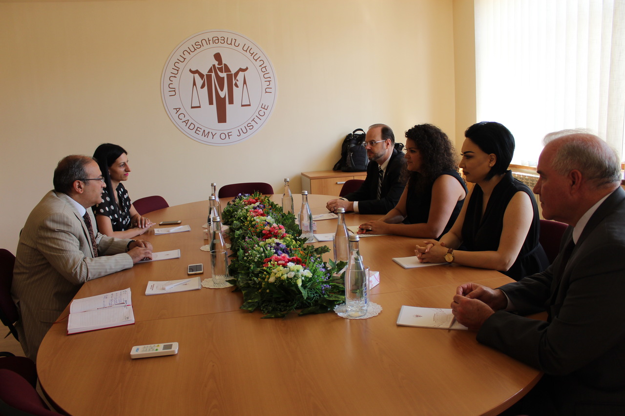 Հուլիսի 19-ին Արդարադատության ակադեմիայի ռեկտոր Սերգեյ Առաքելյանն ընդունեց ՀՀ-ում ԱՄՆ դեսպանության ներկայացուցիչներին՝ «Քրեական արդարադատության բարեփոխումների» ծրագրի ղեկավար Քրիստինա Աֆոյանին, Թմրամիջոցների դեմ պայքարի և իրավապահ համագործակցության (ԹՊԻՀ) գրասենյակի իրավապահ մարմինների հետ համագործակցության խորհրդատու Ադի Հոլլովեյին, ինչպես նաև ԹՊԻՀ գրասենյակի խորհրդատու Ռուշանի Մանսուրին, Հետաքննությունների դաշնային բյուրոյի իրավական կցորդի տեղակալ Մեթթ Բոյդենին: Հանդիպմանը ներկա էր Ակադեմիայի գիտական աշխատանքի գծով պրոռեկտոր Անահիտ Մանասյանը: