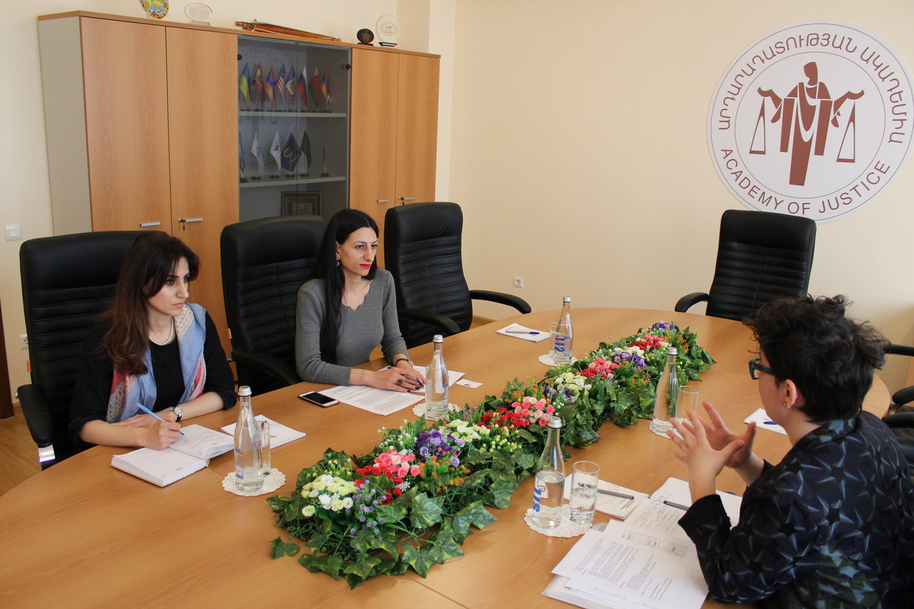 Մարտի 18-ին Արդարադատության ակադեմիա է այցելել Եվրոպայի խորհրդի (ԵԽ) համագործակցության ծրագրերի և կարողությունների զարգացման բաժնի ներկայացուցիչ, ծրագրի համակարգող Անկա Սանդեսկուն: Ակադեմիայի պրոռեկտոր Անահիտ Մանասյանը կարևորել է ԵԽ-ի հետ շարունակական համագործակցությունը և ընդգծել ԵԽ «Կանանց համար արդարադատության մատչելիություն» ծրագրի իրականացման կարևորությունը: Ծրագիրը նախանշված է Արևելյան գործընկերության երկրների դատաիրավական ուսուցում իրականացնող համապատասխան կառույցների համար՝ 2019-2021թթ.-ին:
