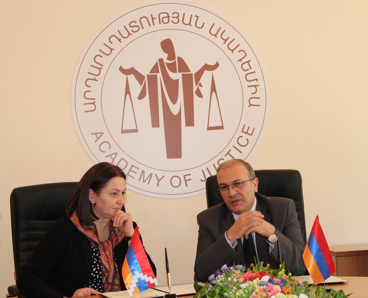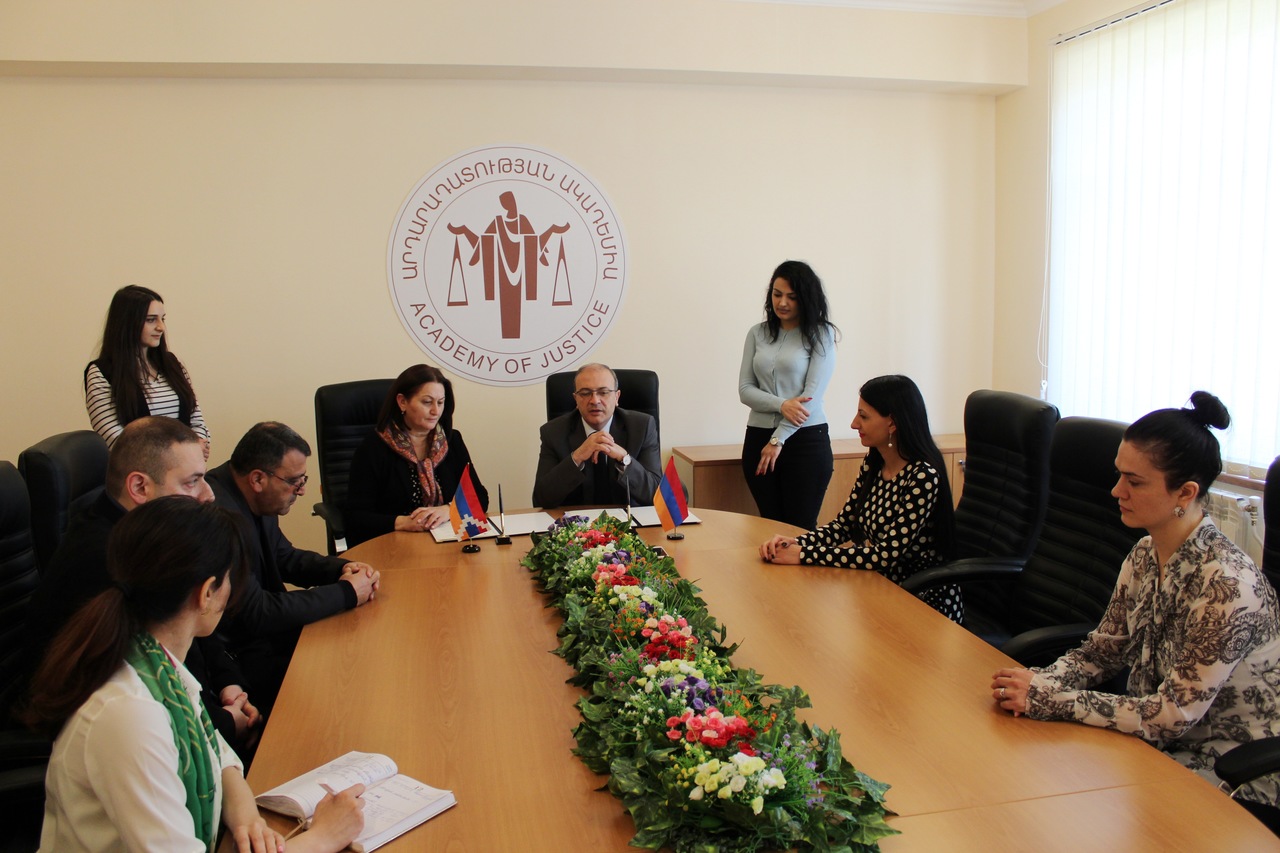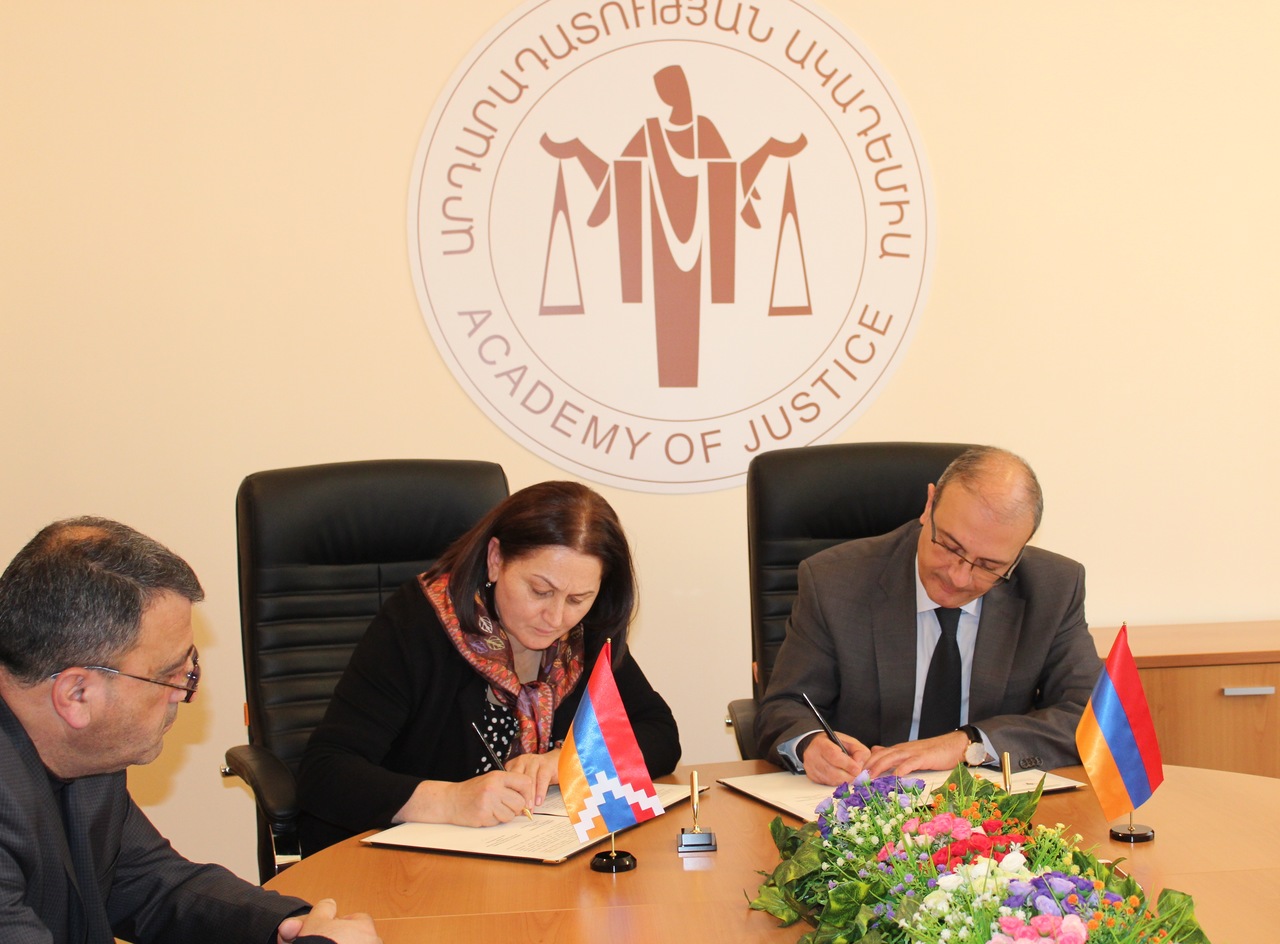 Ապրիլի 12-ին Արդարադատության ակադեմիայում ռեկտոր Սերգեյ Առաքելյանը և «Արցախի Հանրապետության դատավորներ» հասարակական կազմակերպության նախագահ Հասմիկ Խաչատրյանը ստորագրեցին փոխըմբռնման հուշագիր: