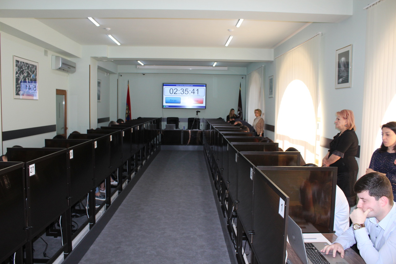 Ապրիլի 12-ին Արդարադատության ակադեմիայում անցկացվեց Ակադեմիայում մասնագիտական պատրաստում անցնող ունկնդիրների՝ դատավորների թեկնածուների հավակնորդների և դատախազների թեկնածությունների ցուցակներում ընդգրկված անձանց առաջին քննությունը՝ առաջին անգամ ամբողջությամբ համակարգչայնացված եղանակով: